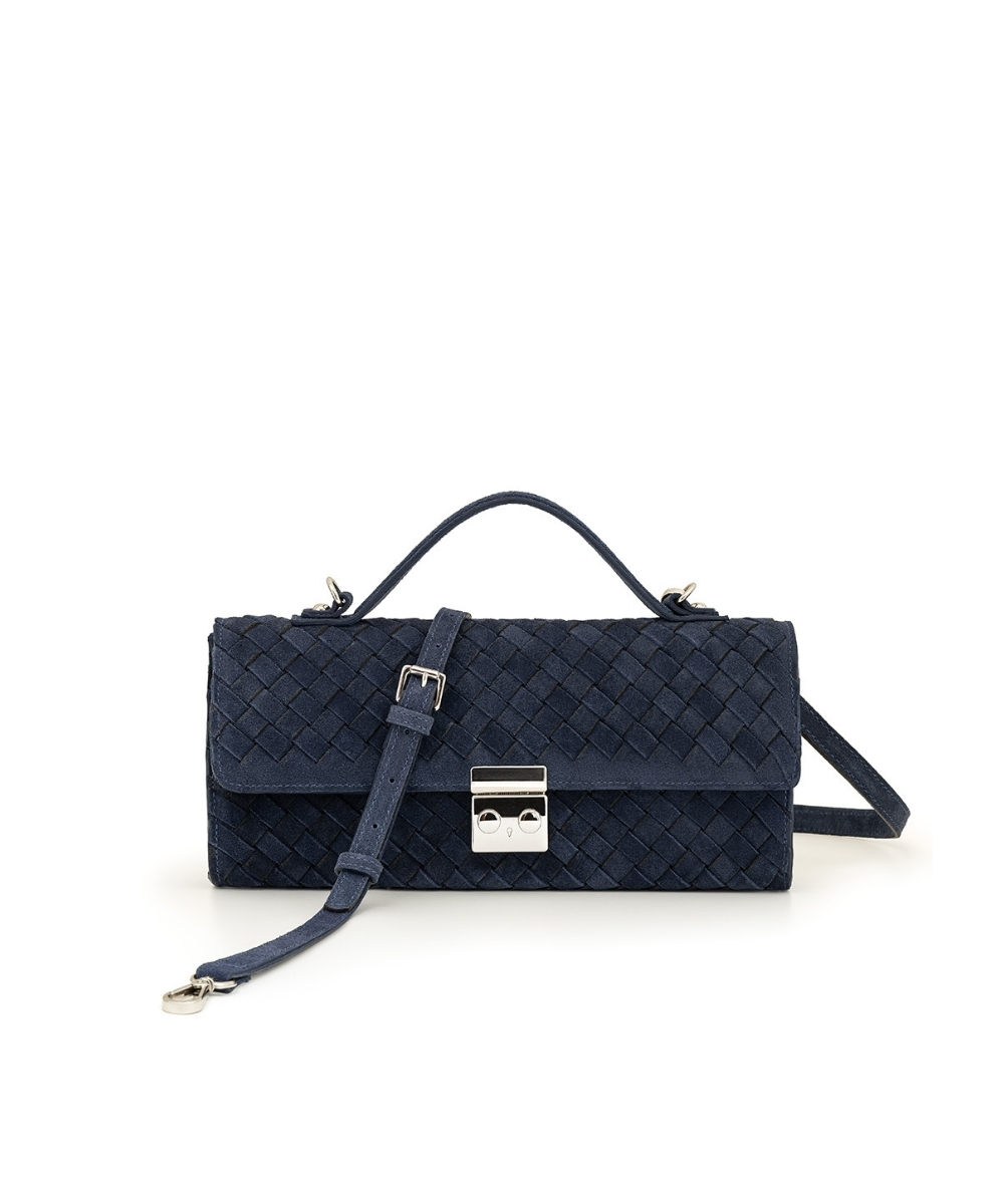 Bolsa Clutch em Couro Tressê | CR-11382 – Camurça Azul