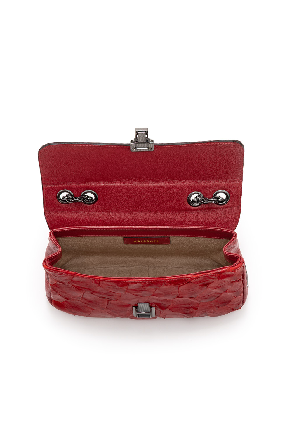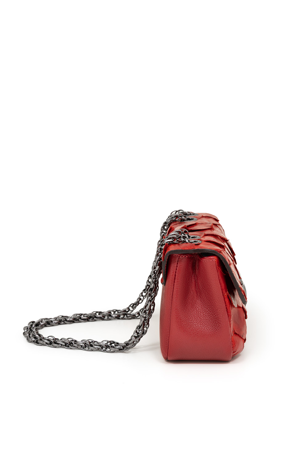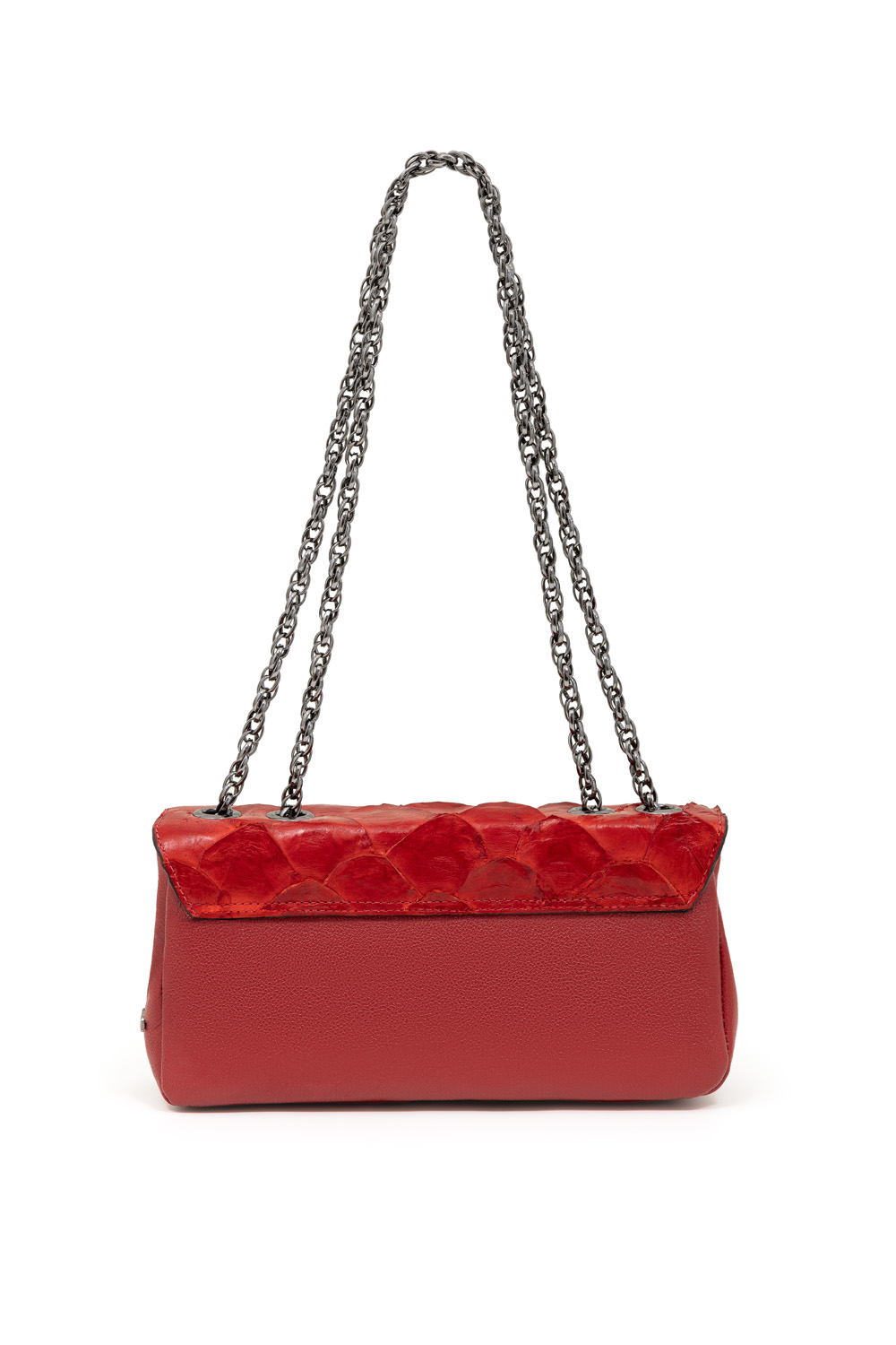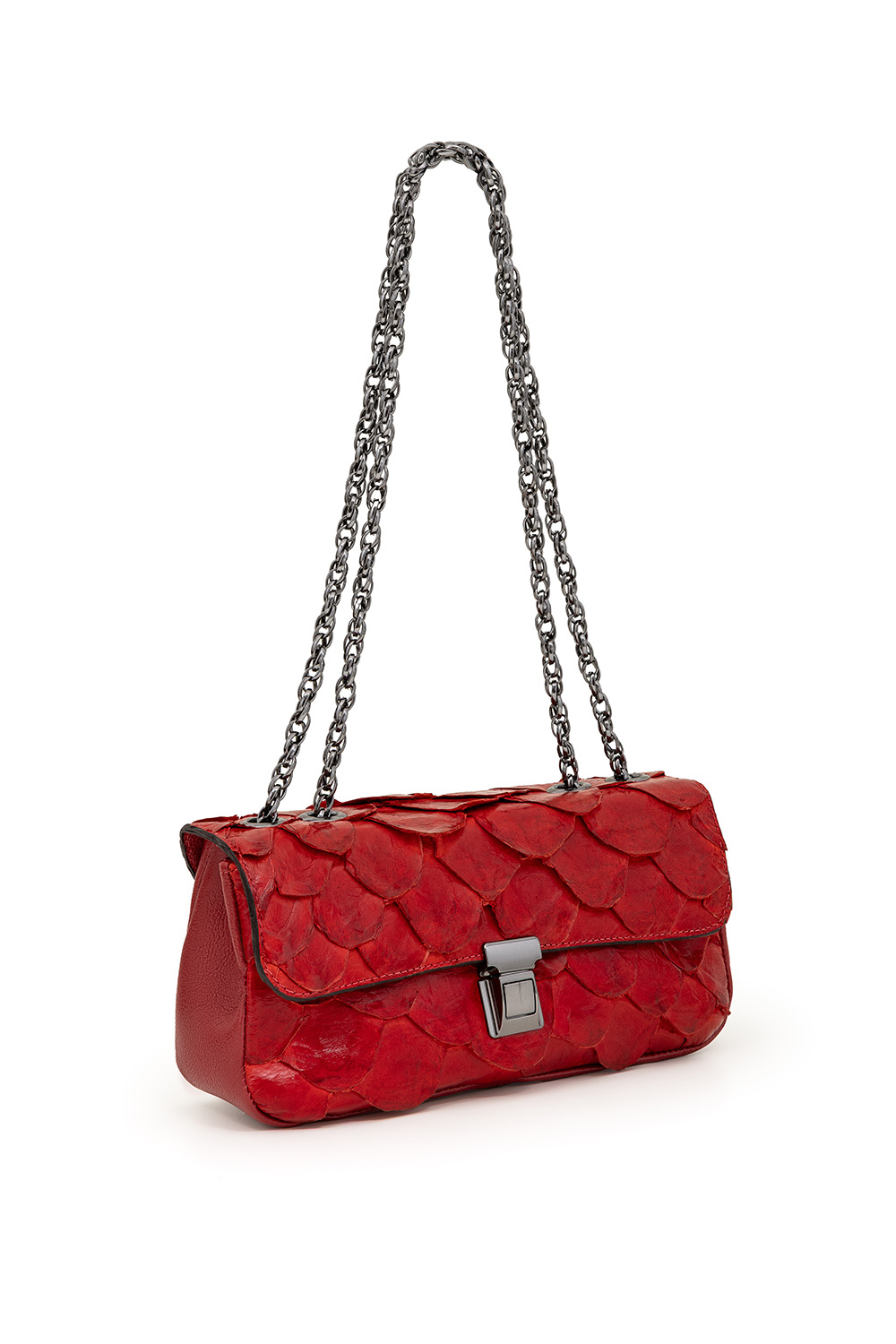 • Feita em couro legítimo de pirarucu e detalhes em couro bovino.