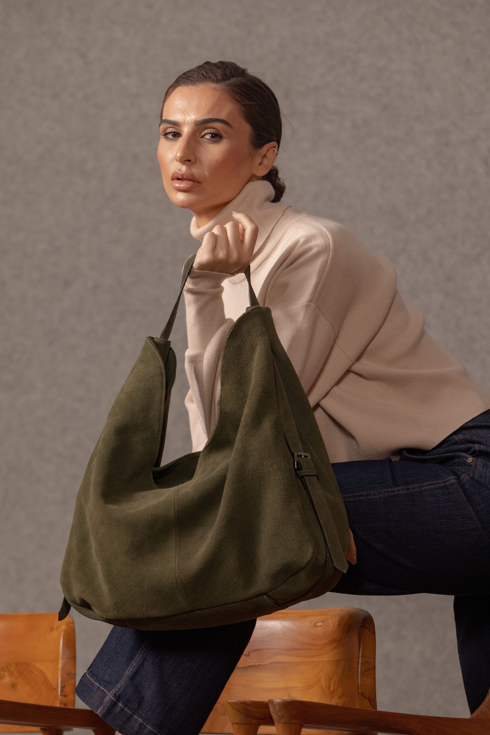 • Feita 100% em couro camurça qualidade premium