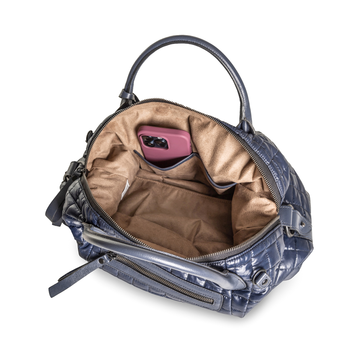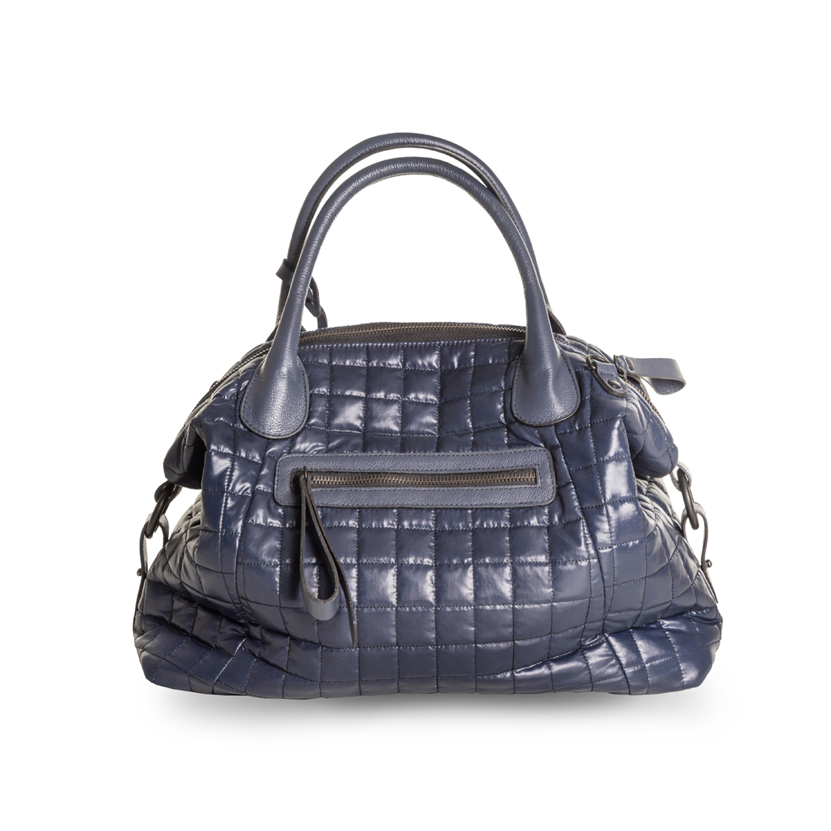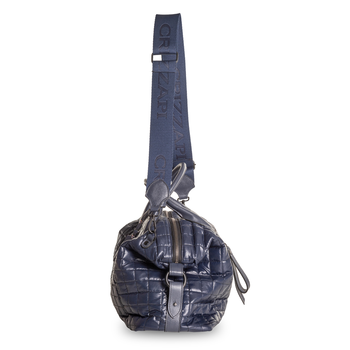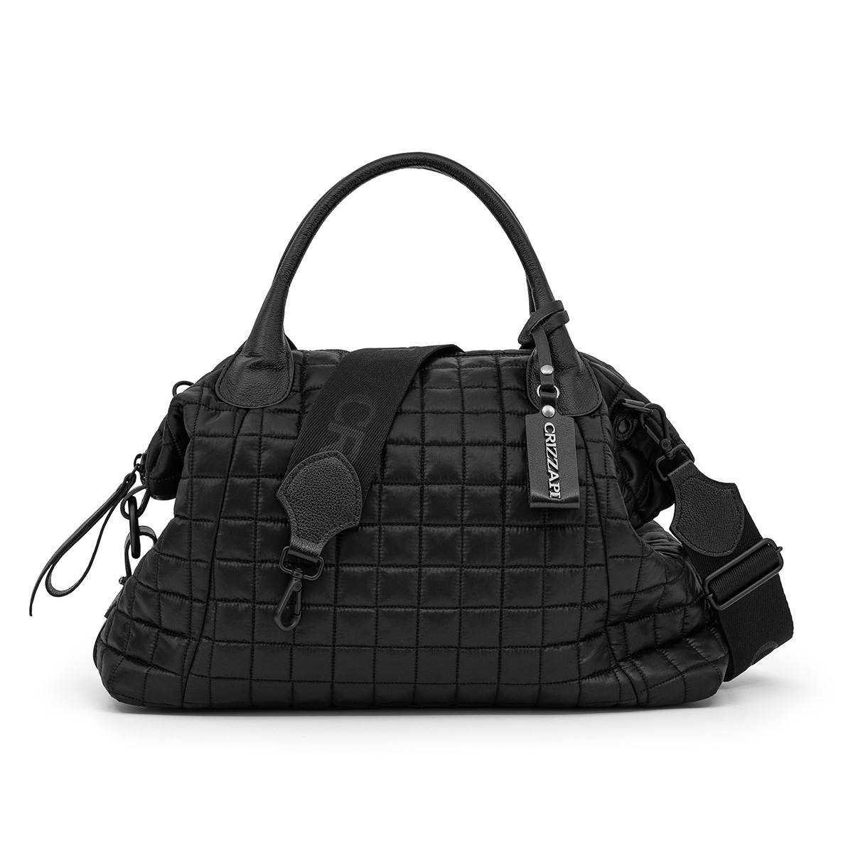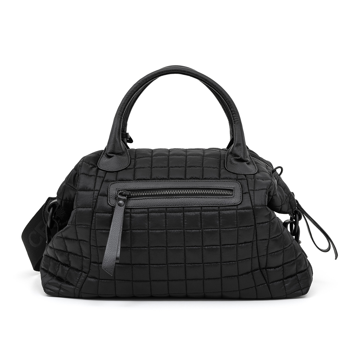 • Bolsa em nylon cirrê com todos os acabamentos em Couro
